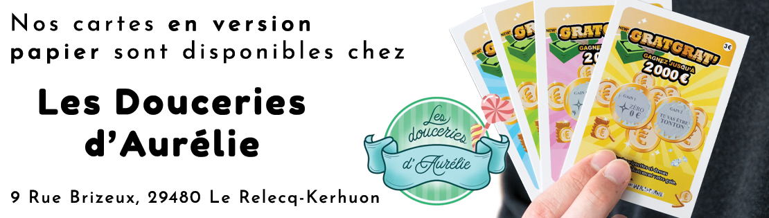 Nos cartes à gratterversion papier sont uniquement disponibles en ligne via notre boutique Amazon prime ou en magasin, chez Les Douceries d’Aurélie près de Brest (annonce grossesse, gender reveal, parrain, marraine, témoin mariage). Dans la limite des stocks disponibles.