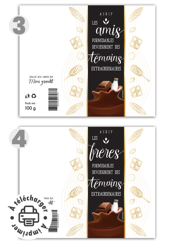 Une demande craquante pour un « OUI » inoubliable ! Vous cherchez une façon ludique et pleine de tendresse pour solliciter vos futurs témoins de mariage ? Notre demande témoin étiquette chocolat transforme une simple tablette en un messager chargé d’émotion. Avec ses messages valorisants, ce suremballage pour tablette de 100g est l’accessoire idéal pour une annonce surprise réussie.