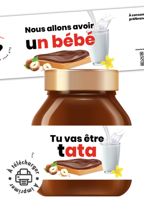 L’annonce de l’arrivée d’un bébé est un moment unique. C’est pourquoi détourner un pot de pâte à tartiner est l’idée parfaite pour allier humour et émotion. Grâce à cette annonce grossesse étiquette pâte à tartiner, vous offrez un cadeau DIY (fait maison) original qui fera sourire vos proches dès l’ouverture du placard !