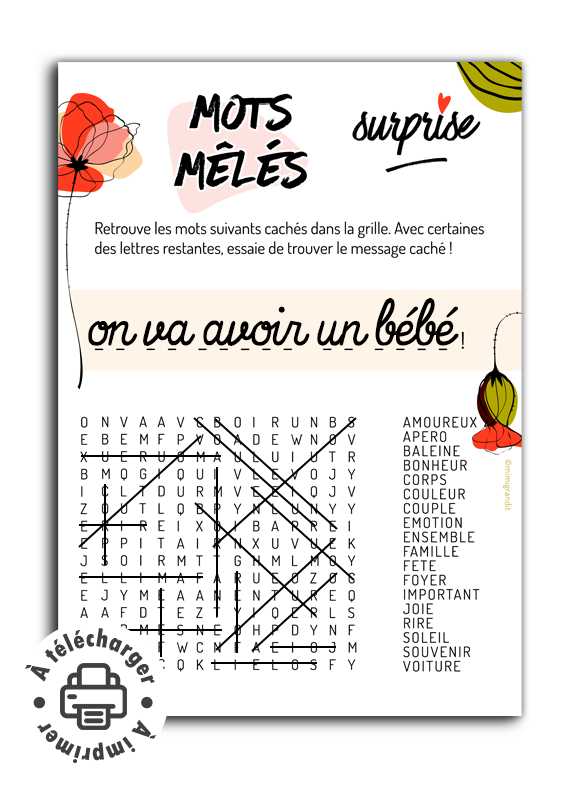 Faites chauffer les méninges pour une annonce inoubliable ! Vous cherchez une façon originale et un brin mystérieuse de partager la grande nouvelle ? Notre annonce grossesse mots mêlés est le support idéal pour transformer une simple soirée en un moment d’émotion intense. Plus qu’un simple jeu, c’est un véritable défi qui révélera votre secret de la manière la plus ludique qui soit.