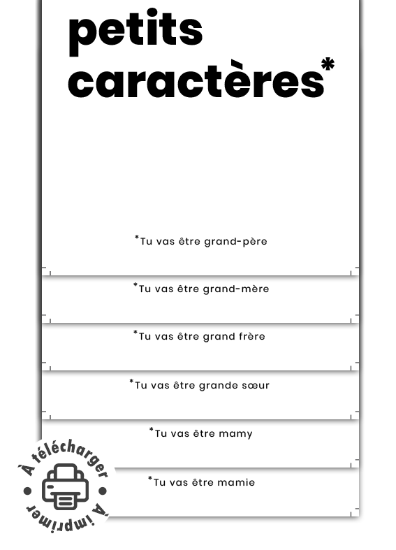 Annonces personnalisées : Tu vas être papa, papi, papy, mamie, mamy, tata, tonton, grand-père, grand-mère, arrière grand-père, arrière grand-mère, cousin, cousine, grande sœur, grand frère.