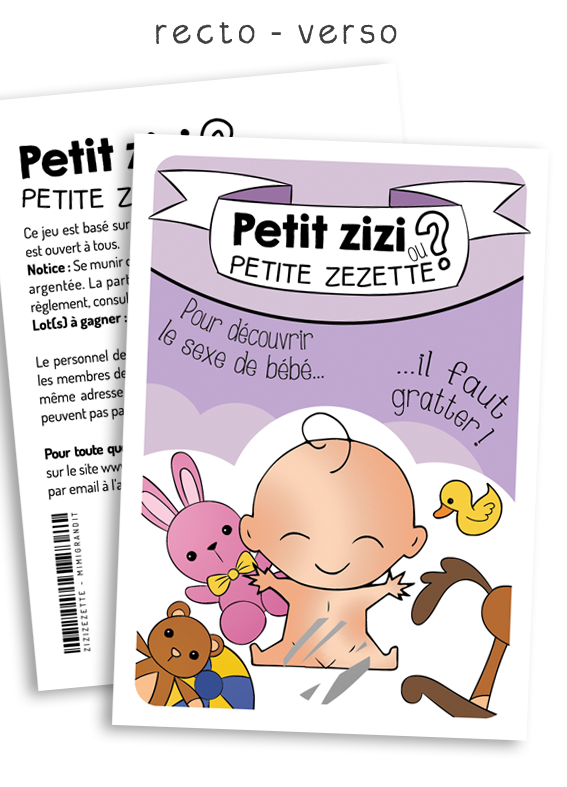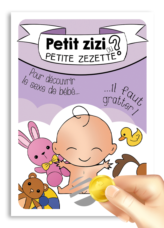 L’annonce du sexe de bébé est un moment unique dans votre vie de futurs parents. C’est pourquoi nous avons imaginé un support interactif et décalé où vos proches deviennent les acteurs de la révélation. En utilisant les codes des jeux de hasard alliés à une illustration cartoon pleine d’humour (une petite « zezette » stylisée), vous créez un véritable instant de complicité et de rire. C’est la promesse d’une surprise mémorable qui casse les codes de la Gender Reveal traditionnelle.