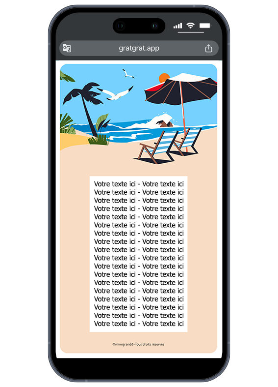 Vous organisez un anniversaire ou une soirée à thème ? Cette carte à gratter numérique personnalisable est alors le choix idéal pour votre annonce. En effet, son design avec transat et parasol installe immédiatement une ambiance de détente. Ainsi, vos proches s’amusent à révéler les détails de votre message en grattant l’image virtuelle. De plus, ce format interactif garantit un effet de surprise réussi sur smartphone.