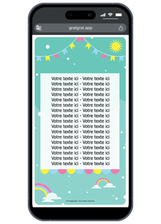 Conseil pour l’envoi : Comme l’affichage des liens peut varier d’un modèle de téléphone à l’autre, accompagnez votre envoi d’une phrase d’accroche (ex: « Coucou ! Un message plein de couleurs t’attend ici, gratte l’image pour le découvrir ! »). Cela rassure vos destinataires et les incite à découvrir le message caché. Plus d’informations dans la FAQ du site.