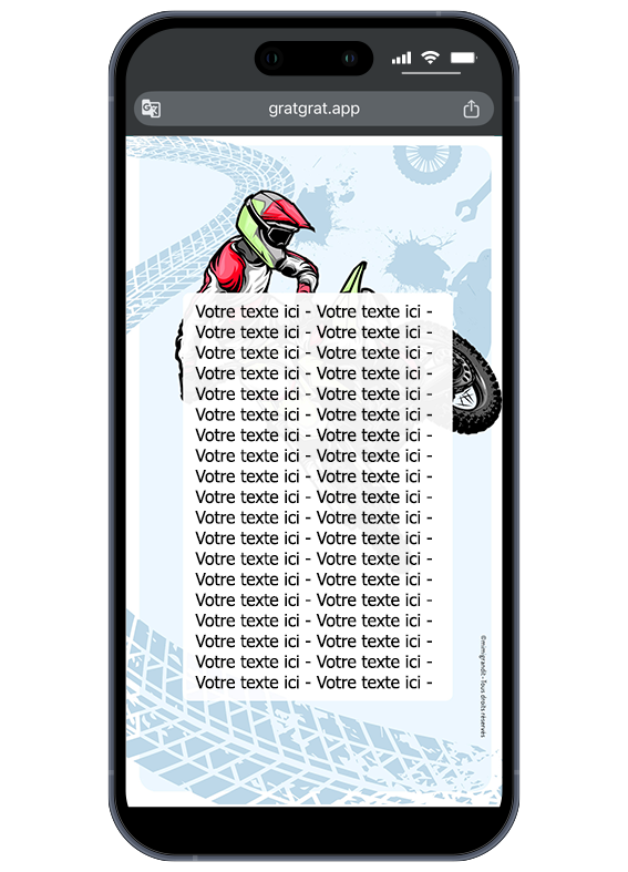 Faites vrombir vos invitations avec une annonce qui décoiffe ! Cette carte virtuelle à gratter moto surprendra vos proches dès l’ouverture de leur message. Grâce à son design moderne montrant une moto prête à prendre la route, vous annoncez l’événement de manière ludique. Vos invités découvrent le texte caché en grattant l’écran de leur smartphone avec le doigt, ou simplement avec la souris sur un ordinateur.