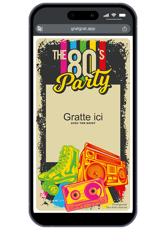 Vous organisez une fête « Back to the 80s » ou un anniversaire nostalgique ? Cette invitation anniversaire thème années 80 sur téléphone est l’accessoire indispensable pour donner le ton dès le premier message. Avec son visuel inspiré des années pop et ses graphismes néons, elle transforme une simple invitation en une véritable expérience de grattage interactive. En effet, vos destinataires s’amusent à découvrir les détails de votre « Retro Party » en grattant l’encre virtuelle directement sur leur smartphone avec le doigt.