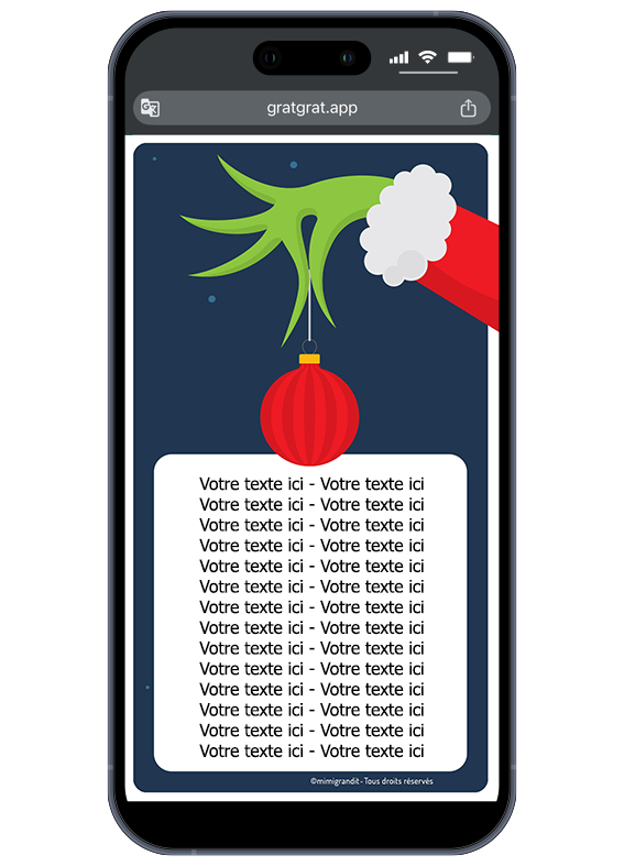 Conseil pour l’envoi : L’affichage des liens peut varier d’un appareil à l’autre. Nous vous suggérons d’accompagner votre envoi d’un court message personnel. Par exemple : « Même si tu détestes Noël, cette surprise va te plaire ! Clique sur le lien et gratte l’image pour découvrir ton cadeau ! »