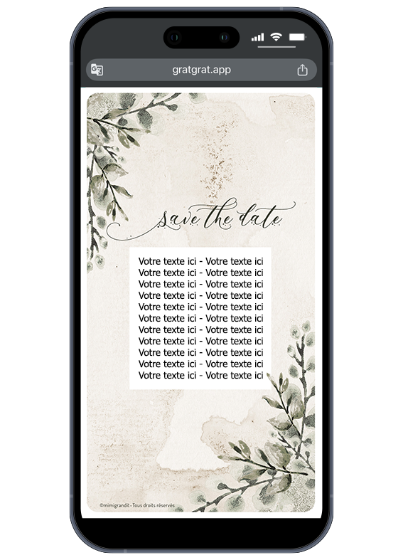 Vous souhaitez que vos proches bloquent leur agenda pour le plus beau jour de votre vie ? Ce save the date en ligne permet d’avertir votre entourage rapidement, bien avant la finalisation de vos faire-part officiels. Son illustration de feuillage naturel installe immédiatement une ambiance sereine et raffinée. En effet, cette version dématérialisée vous offre une grande liberté : vos invités s’amusent à révéler la date de votre mariage en grattant l’encre virtuelle directement sur leur écran. Par conséquent, vous marquez les esprits tout en restant dans une démarche écologique et moderne.